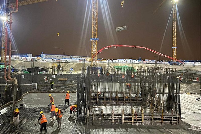 集團(tuán)起步區(qū)游泳館項(xiàng)目首塊筏板澆筑完成