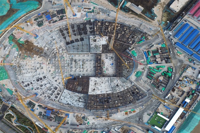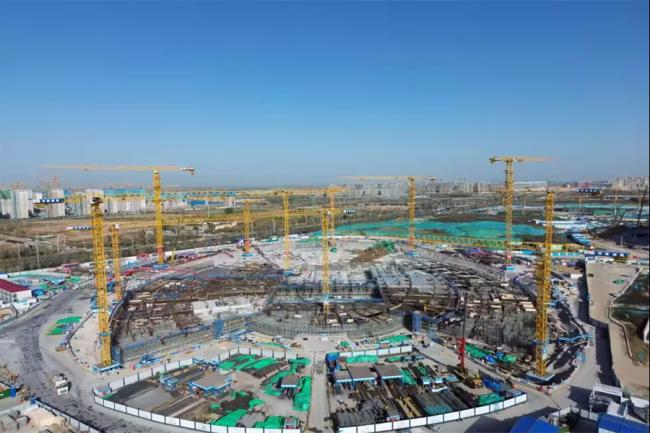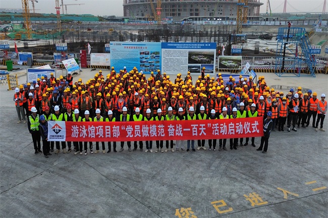 開局決戰(zhàn),展現(xiàn)城建速度。集團承建的濟南起步區(qū)黃河體育及科技園區(qū)基礎設施一期工程游泳館及全民健身中心施工項目設計為甲級體育建筑,總建筑面積為16.63萬平方米,總座席數(shù)約4000 座,地上部分為游泳跳水館和全民健身功能。項目包括“水主題”健身休閑活動中心、“水主題”文化展示活動中心、時尚體育中心三大部分。工程建設初期,項目團隊第一時間召開動員大會,全力疏通施工“痛點、難點、堵點”,堅持高標準、嚴要求施工原則,完成土方開挖16.6萬立方米,混凝土澆筑38400立方米,鋼筋綁扎5680噸,高質高效推動項目建設。