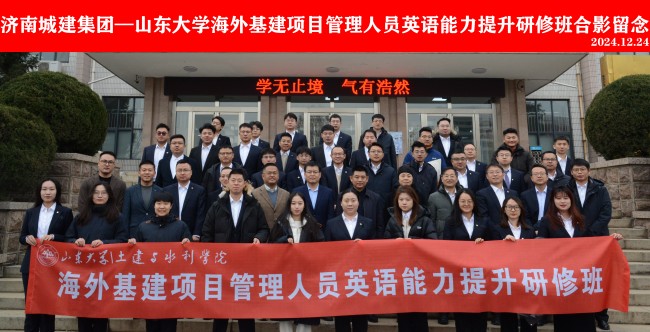 12月24日,集團(tuán)2024年海外業(yè)務(wù)骨干英語能力提升培訓(xùn)班在山東大學(xué)千佛山校區(qū)開班。山東大學(xué)土建與水利學(xué)院正處級(jí)組織員胡巖、副院長(zhǎng)王少偉,集團(tuán)黨委委員、副總經(jīng)理史紅軍參加活動(dòng)。集團(tuán)市場(chǎng)經(jīng)銷管理相關(guān)崗位人員參加培訓(xùn)。